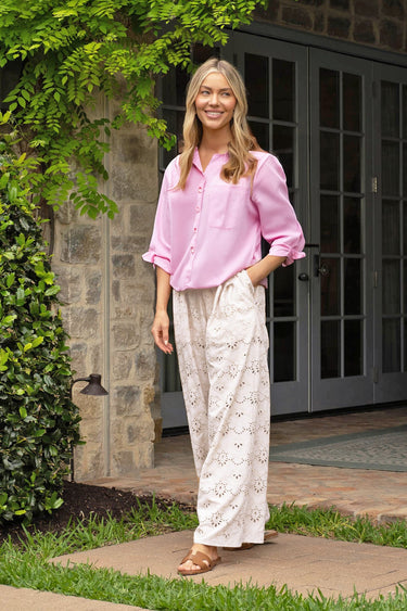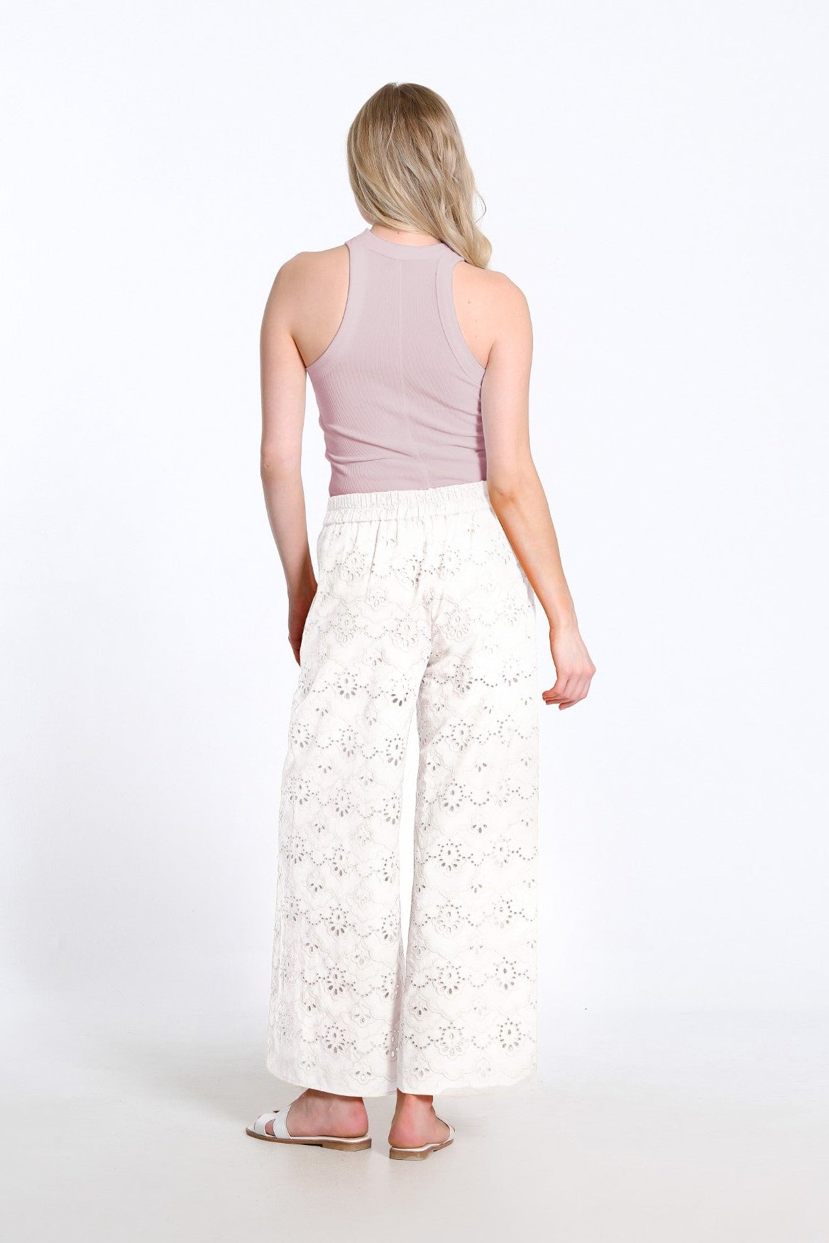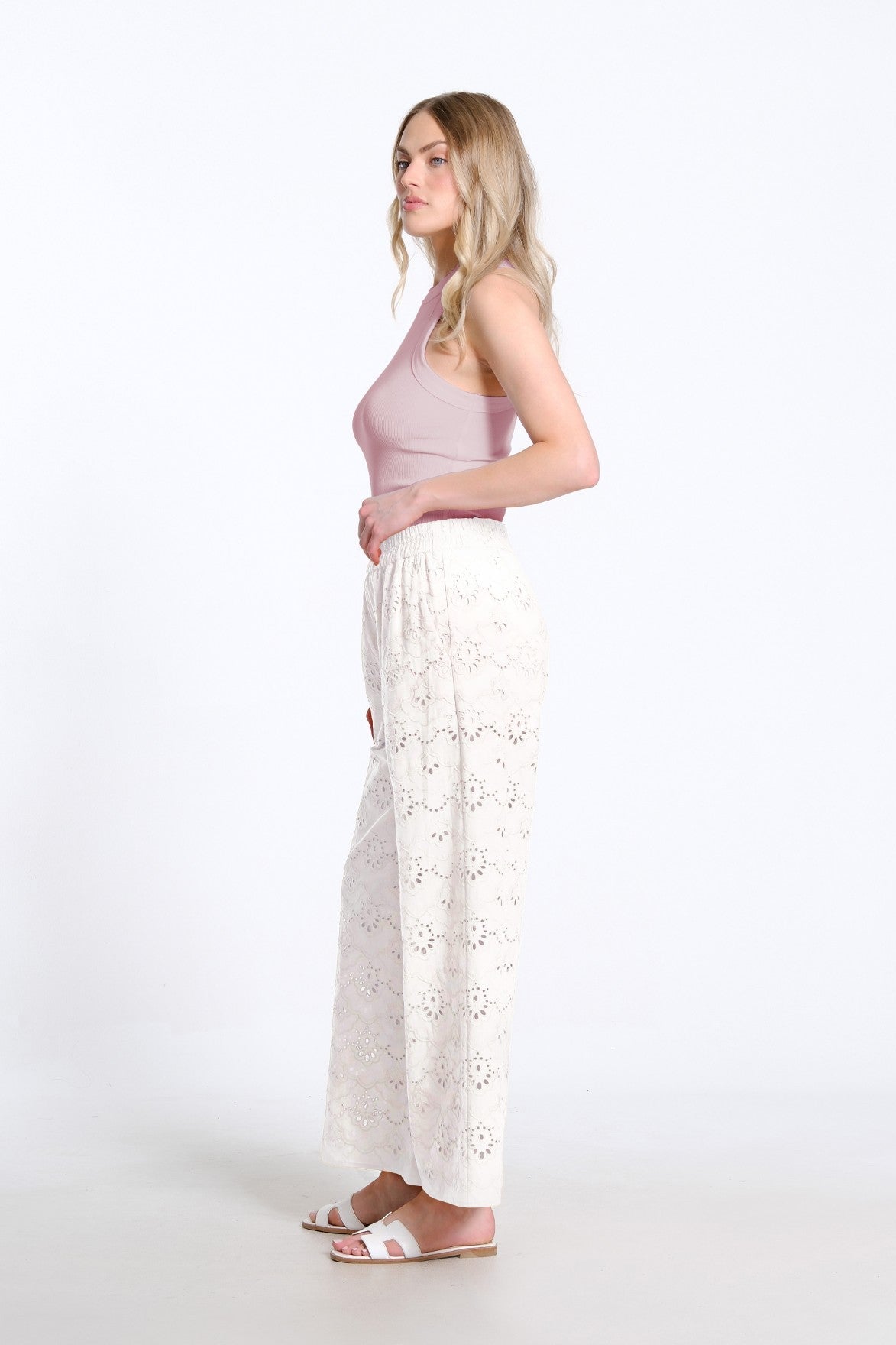 Laid-back and designed for easy days, the Quinn Pant is your go-to for relaxed elegance. Crafted with a crisp white eyelet design, these pants feature an elasticated waistband that moves with you and generous pockets for practicality without sacrificing polish.