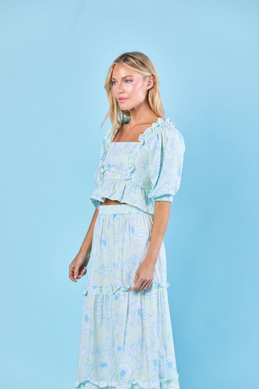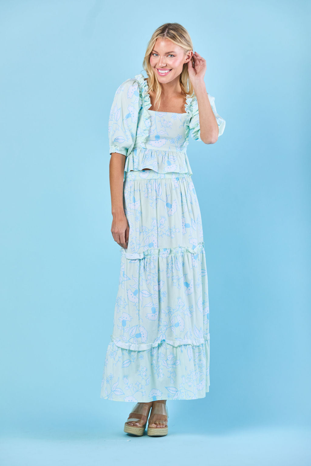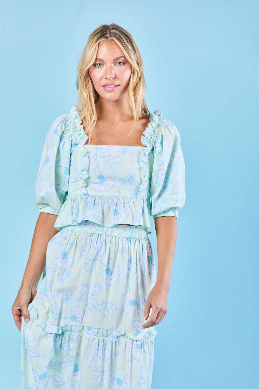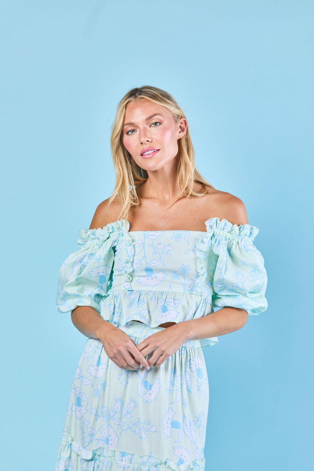 Indulge in the gorgeous romance of the Emma Blouse, a new addition to our Spring Collection. With ruffle details and a versatile design, this blouse can be styled on or off the shoulder. The smocked back provides a comfortable and flattering (flexible!) fit. Pair it with the matching skirt for a stylish, matching set, or with white jeans for a more casual — but equally beautiful — look. We love this for date night!