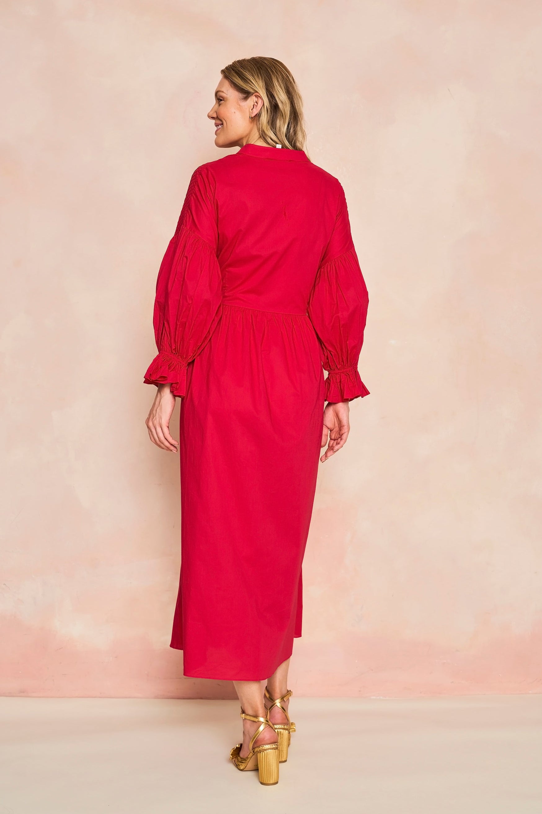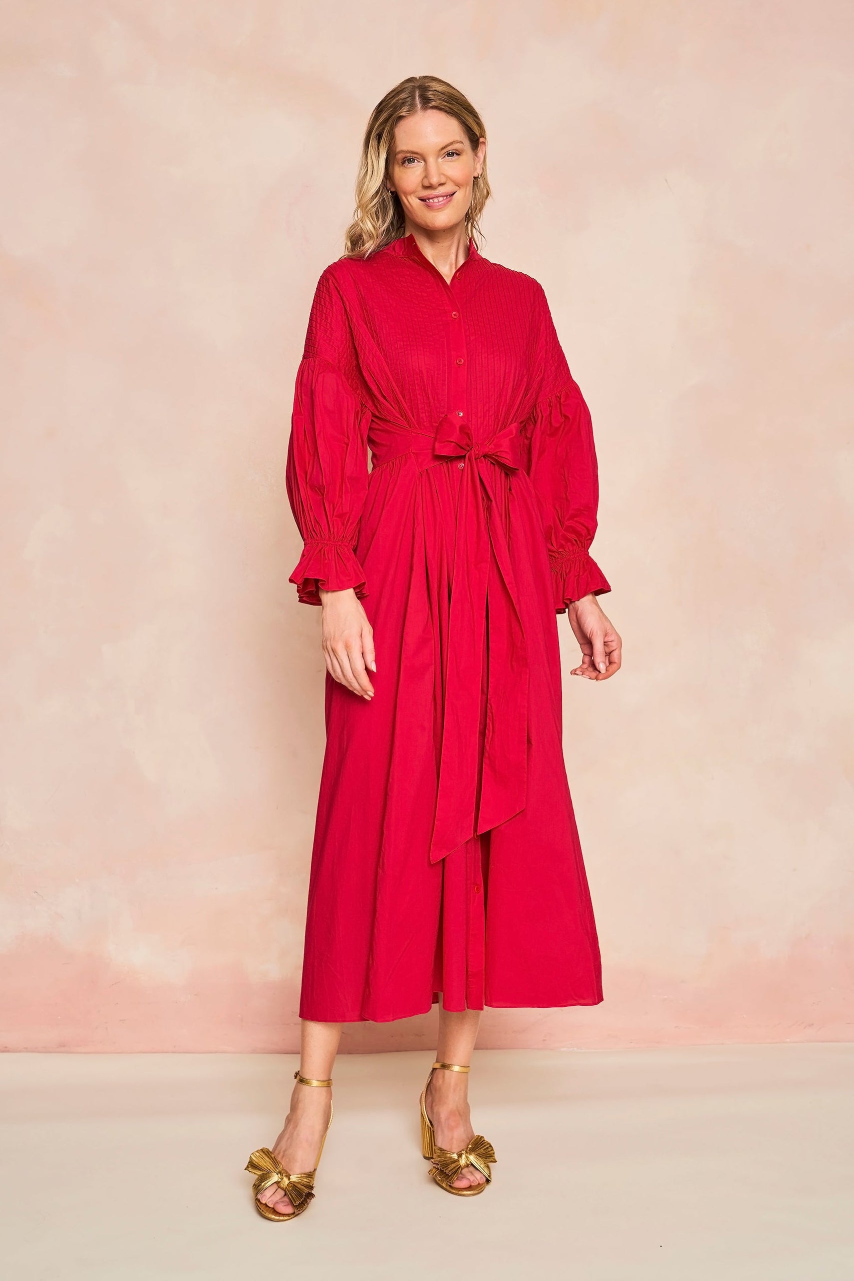 Our best-selling Every Body Dress is back in a new holiday color perfect for seasonal celebrations. Designed as an innovative one size fits most style, this dress offers effortless comfort for a variety of figures—because every body is beautiful. Made from light and airy cotton voile, it features a full gathered sleeve, button front, an attached adjustable belt and a flowy skirt for a chic and sophisticated look.