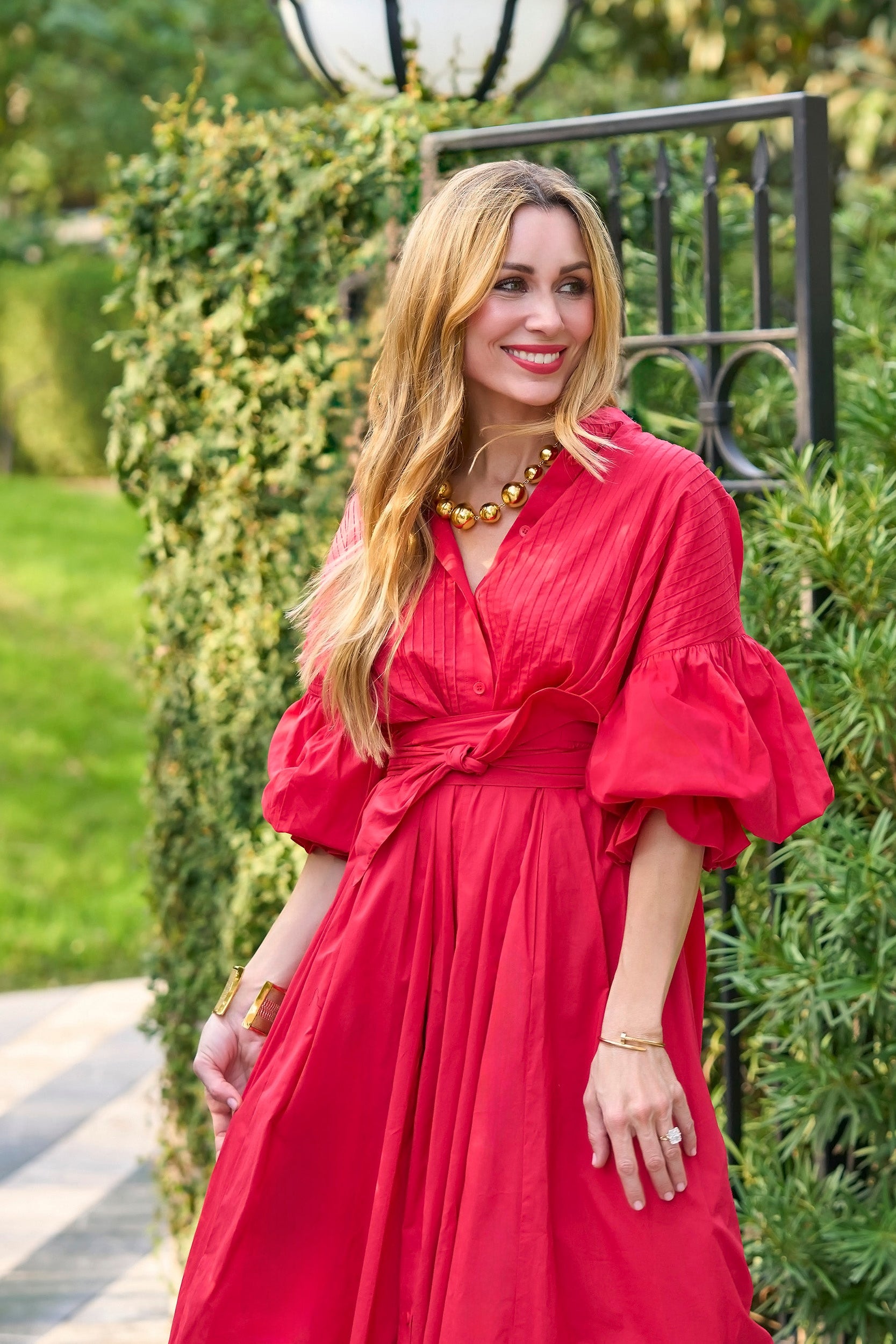Our best-selling Every Body Dress is back in a new holiday color perfect for seasonal celebrations. Designed as an innovative one size fits most style, this dress offers effortless comfort for a variety of figures—because every body is beautiful. Made from light and airy cotton voile, it features a full gathered sleeve, button front, an attached adjustable belt and a flowy skirt for a chic and sophisticated look.