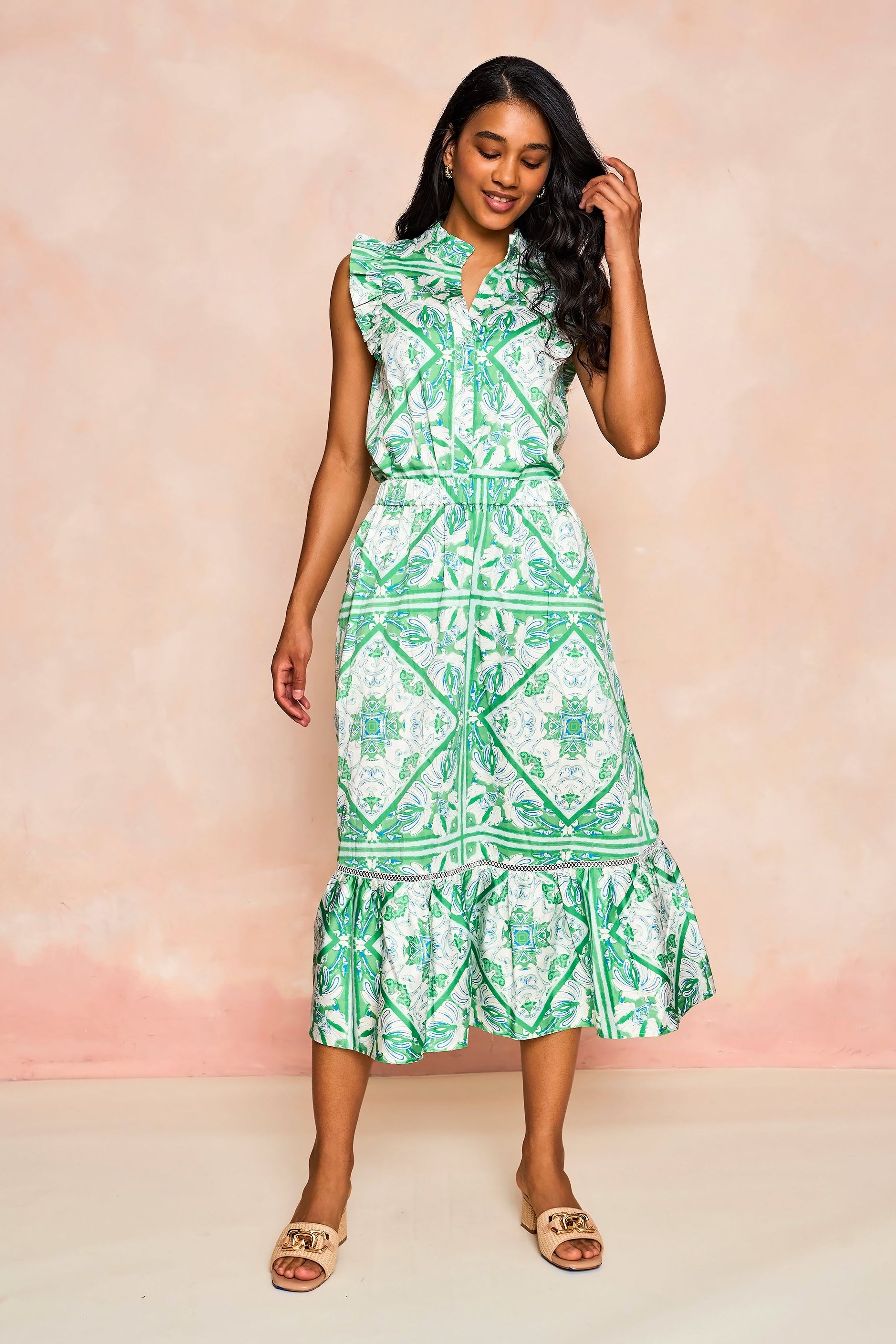 Vivi Skirt in Meadow Zellige Tile