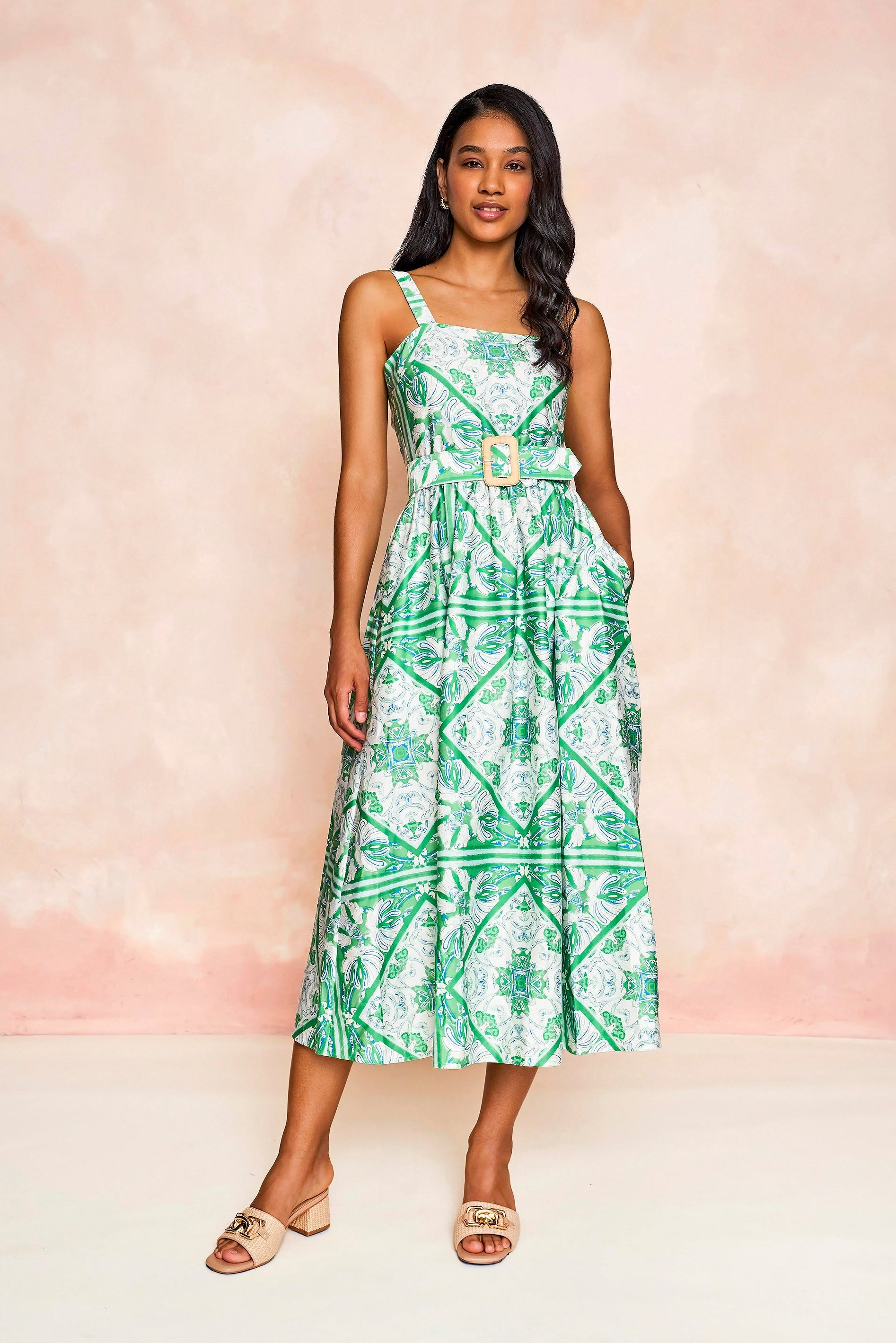 The perfect spring dress, the San Miguel features an adjustable belt and smocked back bodice to create a flattering silhouette that’s as easy to wear as it is beautiful. In our new green tile pattern, this dress is perfect for adding some flirty and feminine elegance to your spring wardrobe.