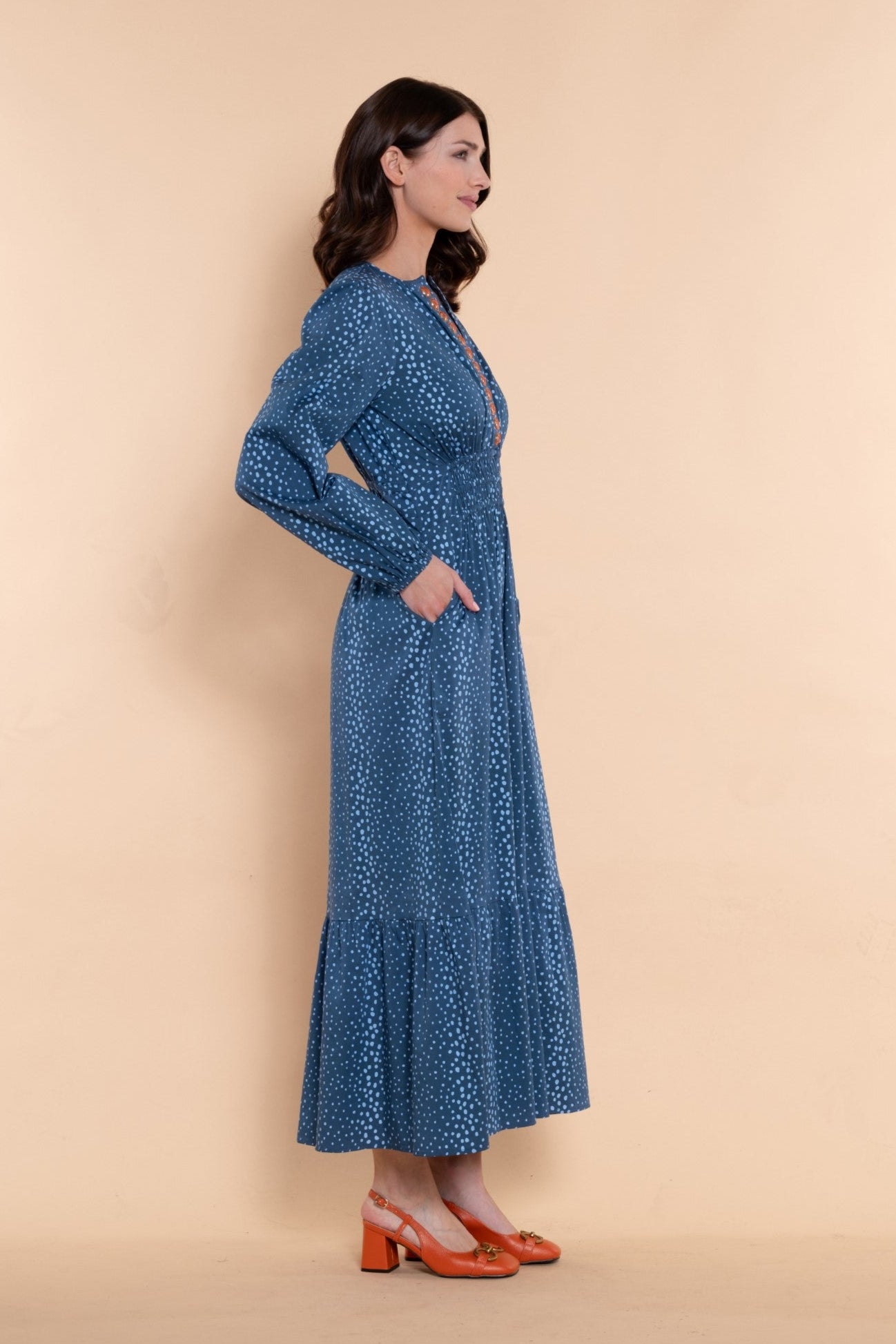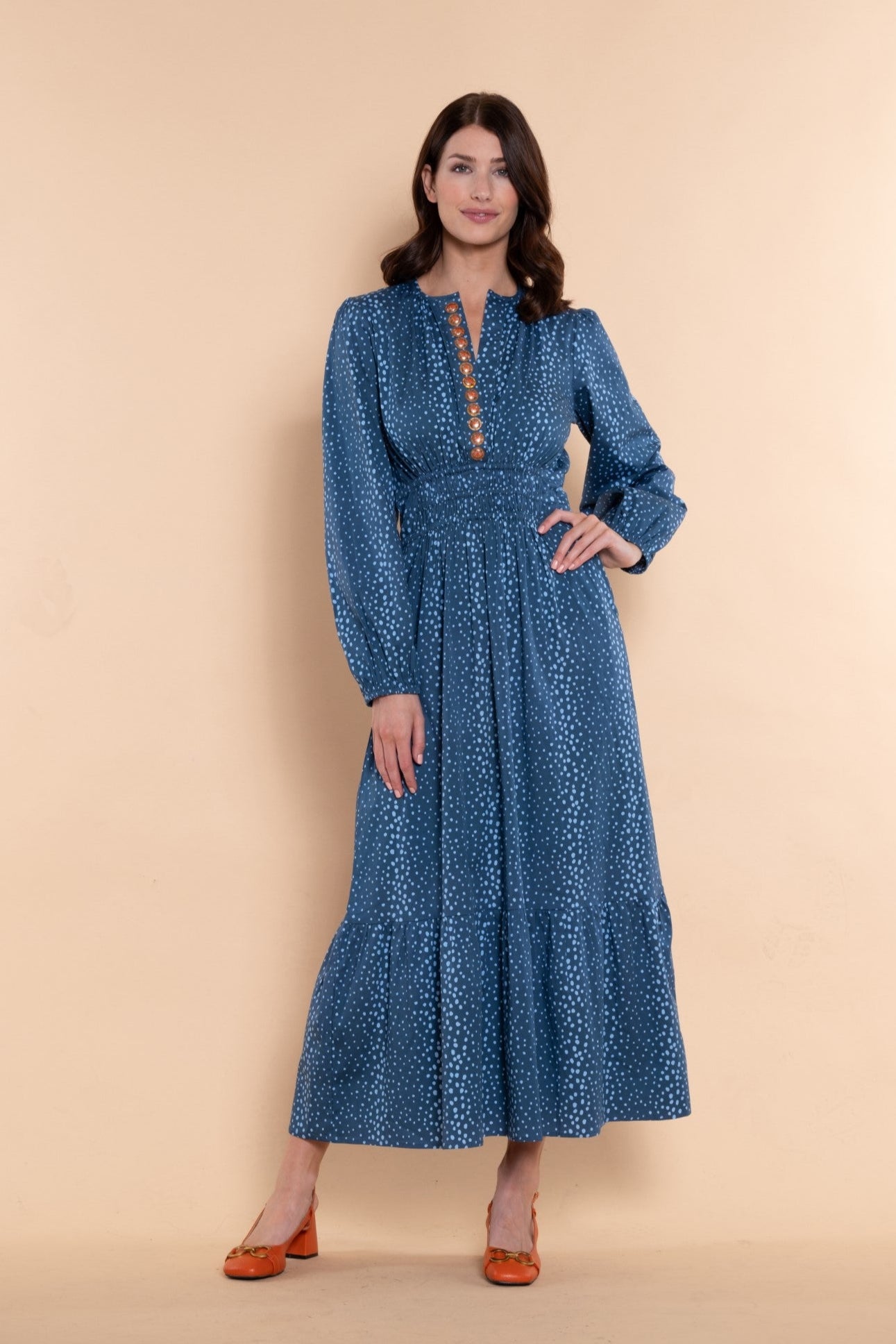 Eloise Dress Long Sleeve in Lapis Cheetah